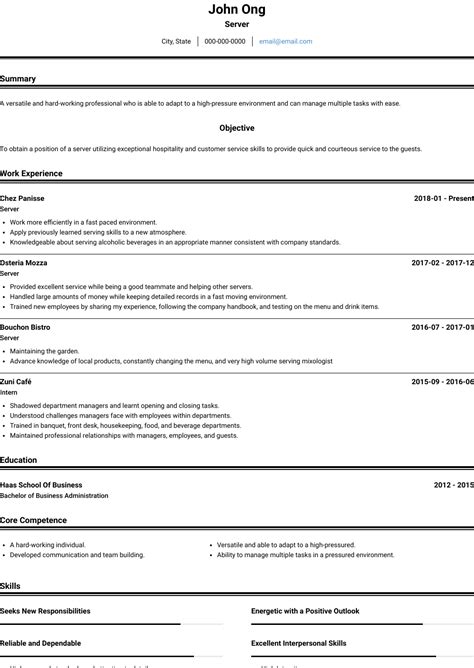 Best Server Resume. Server Resume - Samples & How to Guide. "Server" is the preferred, gender-neutral term for Good Examples of Achievements for a Server Resume. Servers make sure that customers of a restaurant enjoy their dining experience A well-written Server resume sample emphasizes customer service skills, courtesy.
